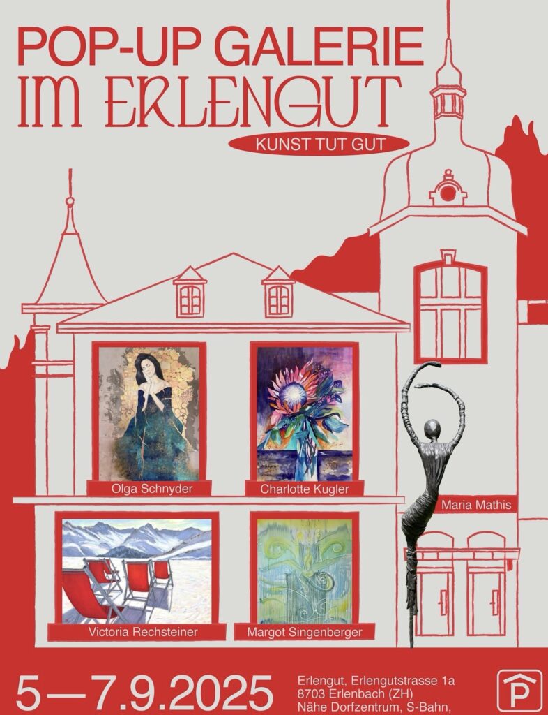 Am Freitag, 5. September und während der Erlenbacher Chilbi, Samstag 6. bis Sonntag 7. September 2025, 14h – 20h präsentierten KünstlerInnen vom Zürisee ihre Bilder und Skulpturen in wunderschöner Umgebung nahe vom Ortszentrum Erlenbach (ZH), Schweiz.